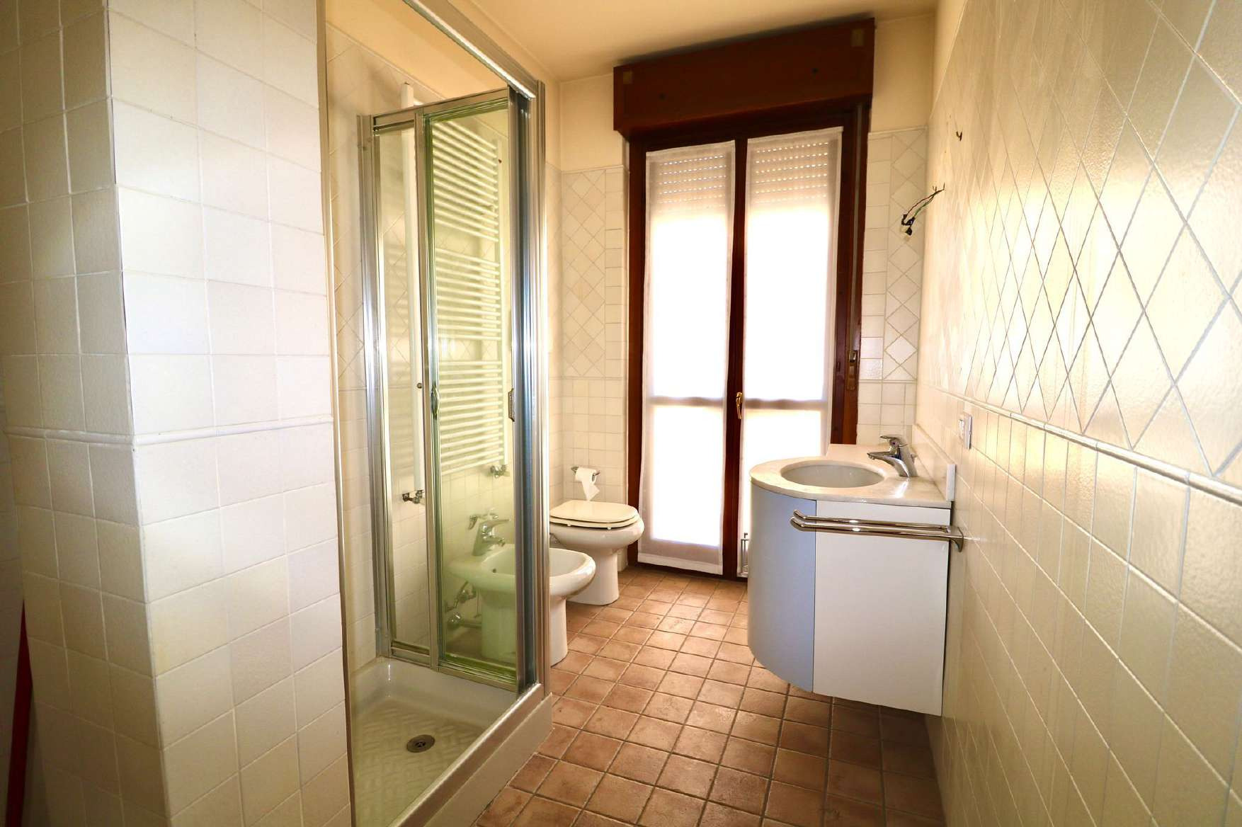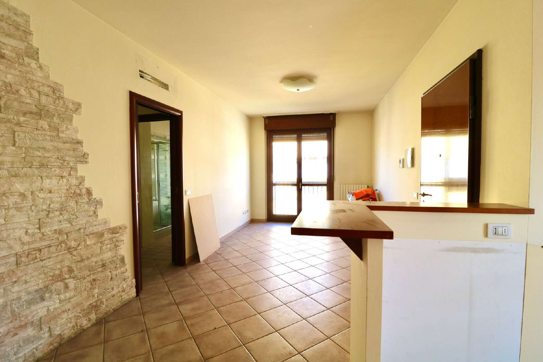 Abitazione in palazzina trifamiliare di tre piani fuori terra e composta da tre locali, disimpegno, bagno e balcone, oltre a vano cantina al piano terreno. Superficie di mq 87. Libero. Spese condominiali previste.