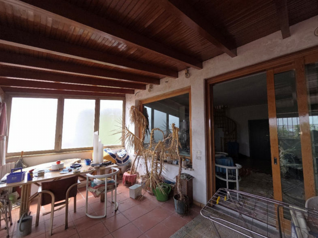 CORPO A composto da appartamento a piano primo costituito, con riferimento alla planimetria catastale, da sei locali, cucina abitabile, tre bagni, due ripostigli e relativi corridoi/disimpegni, piccolo balconcino fronte Via Boccaccio, terrazzo lato interno, con sovrastante veranda,.