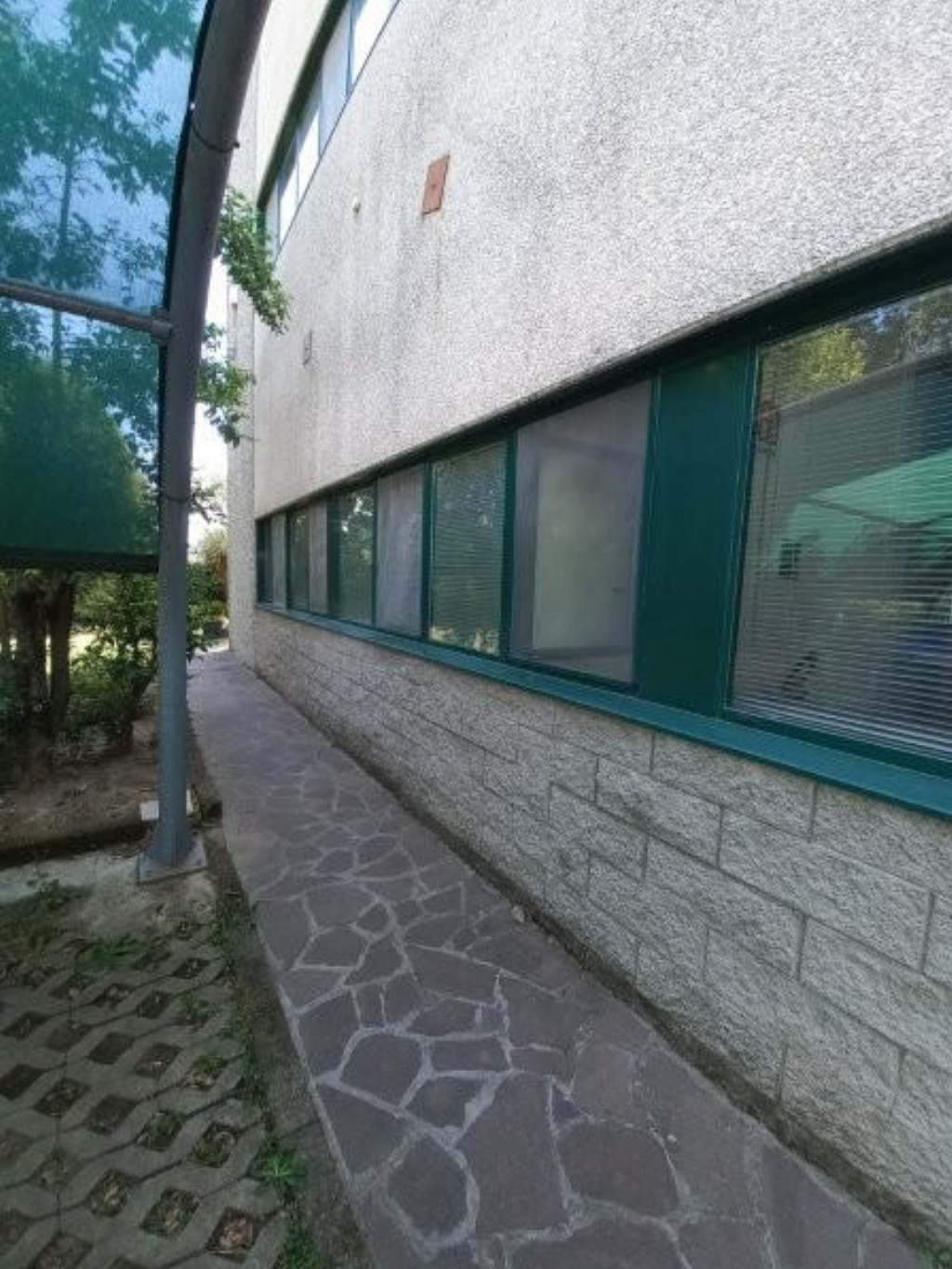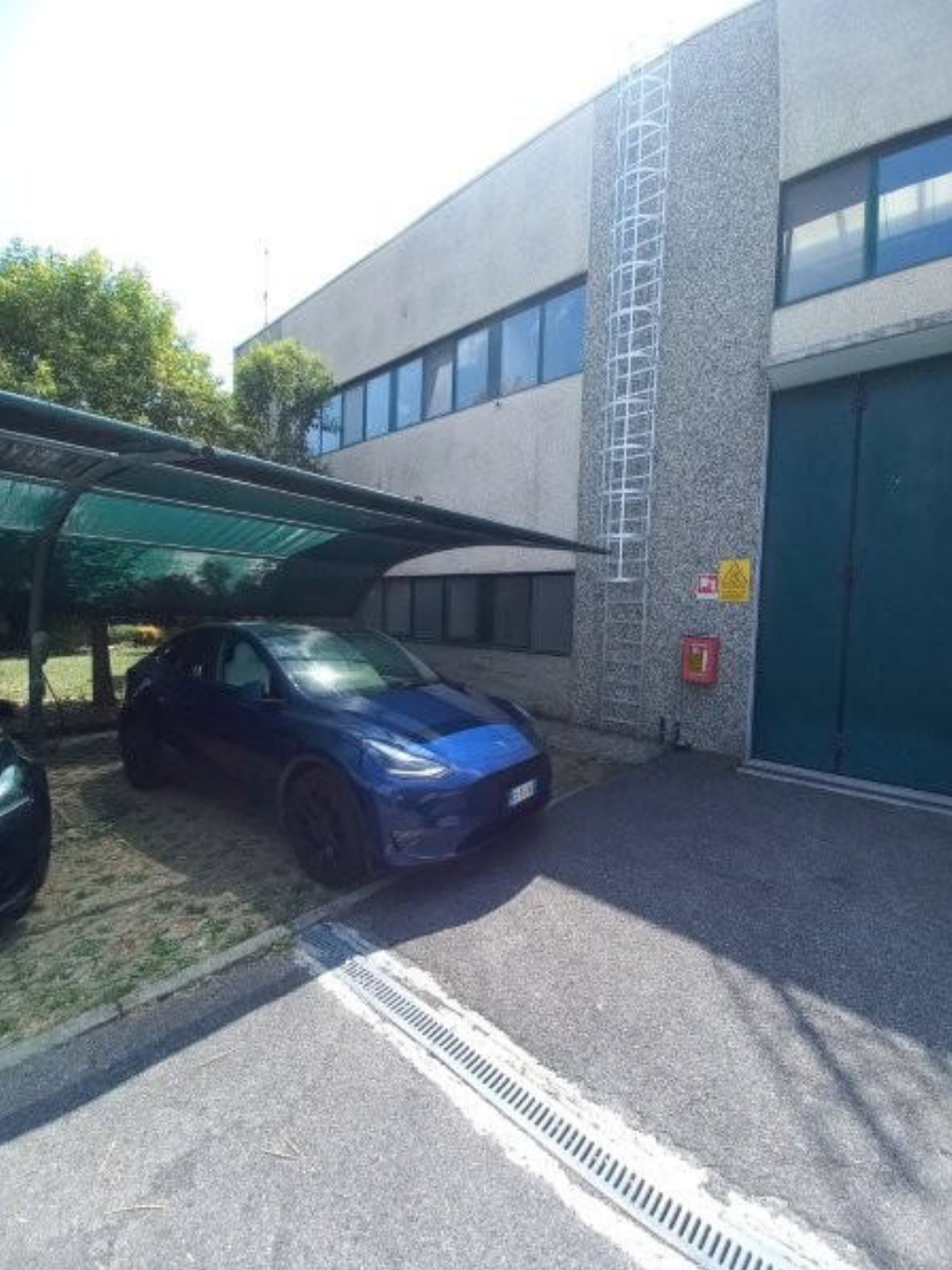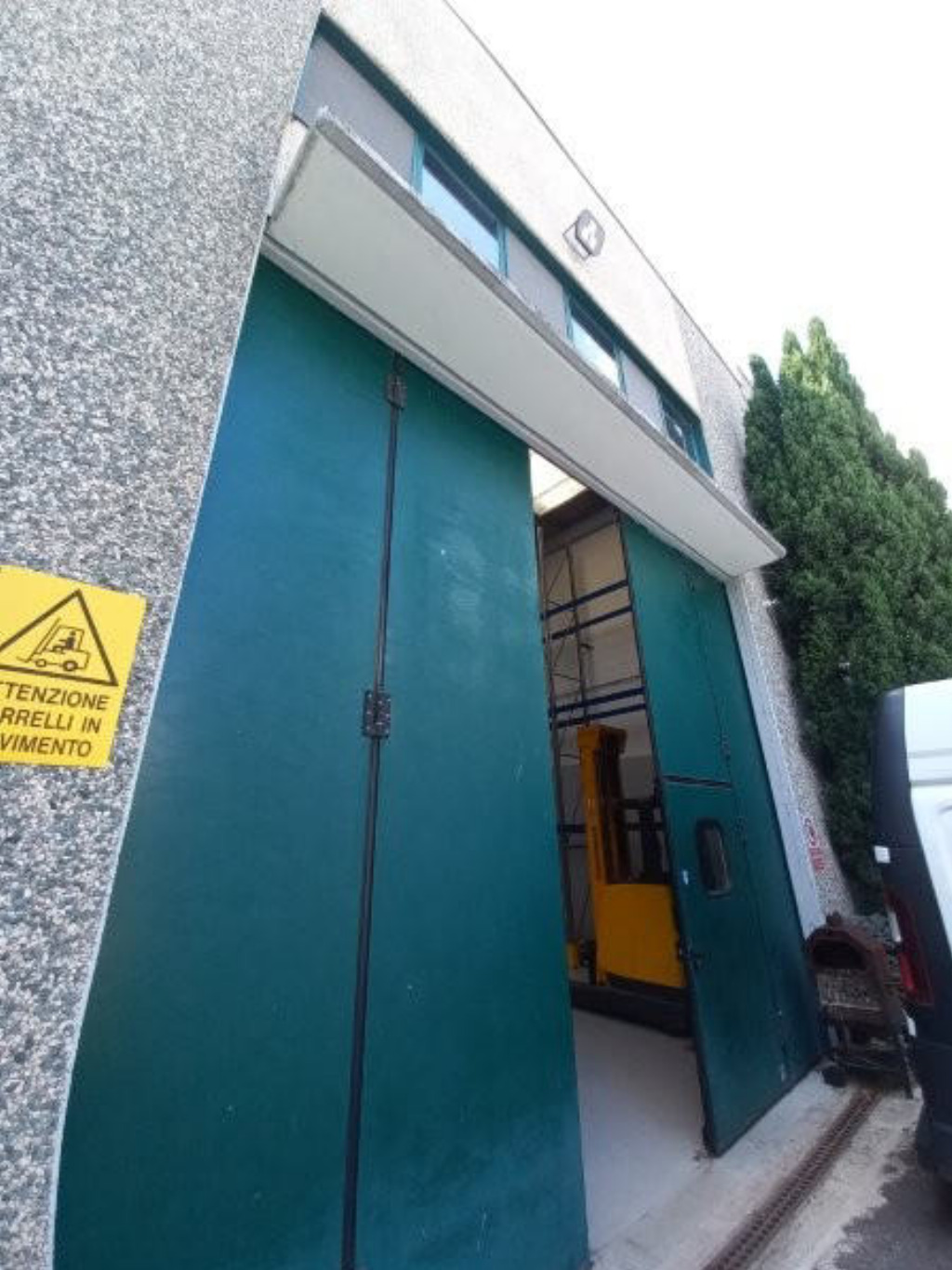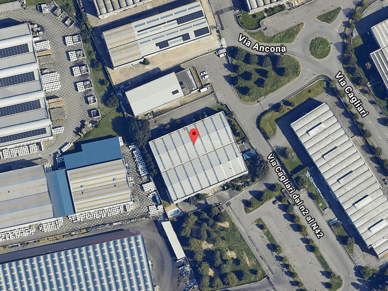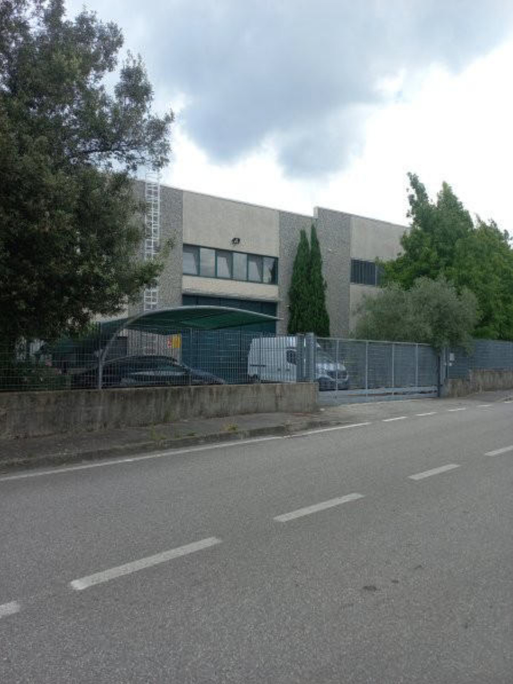Piena intera proprietà di CAPANNONE INDUSTRIALE, con accesso diretto automezzi, servizi e spogliatoi, blocco uffici composto al piano terra da ingresso-reception, bagno e 3 uffici, e al primo piano da sala riunioni, oltre ABITAZIONE al primo piano composta da ingresso, soggiorno/cucina, due camere, disimpegno, bagno e CORTE ESTERNA pertinenziale recintata, in parte asfaltata per manovra automezzi (mq 55) e in parte sistemata a verde (mq 345), impianto di ricarica autovetture elettriche e posti auto coperti.