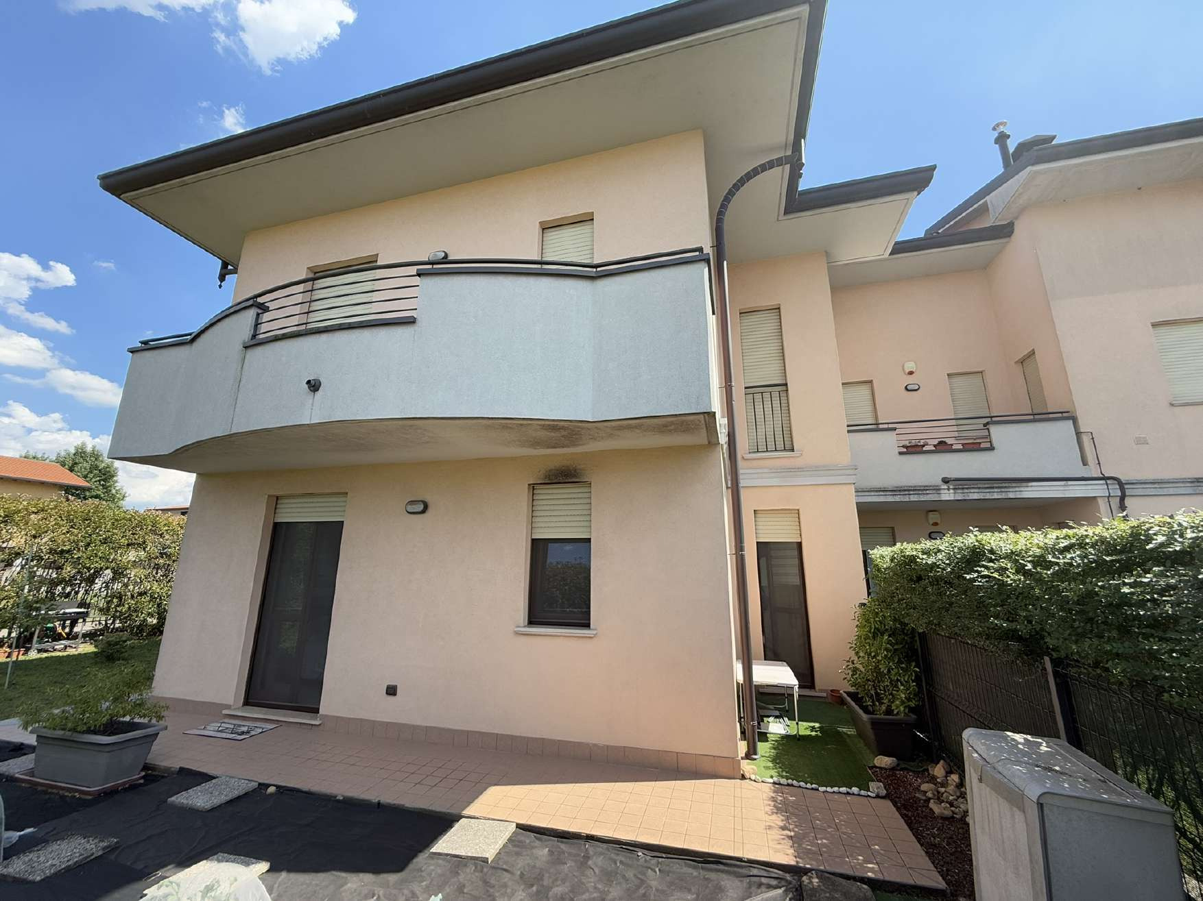 camere, 1 ripostiglio e cortile di proprietà oltre a cantina al piano interrato e box auto doppio