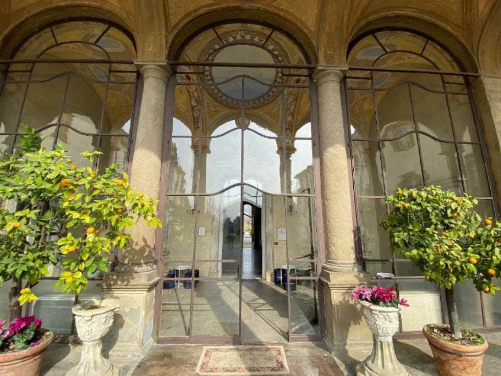 - edificio di tre piani fuori terra ad uso portineria posto all'ingresso del viale principale di accesso alla villa settecentesca, con annessa area edificabile.