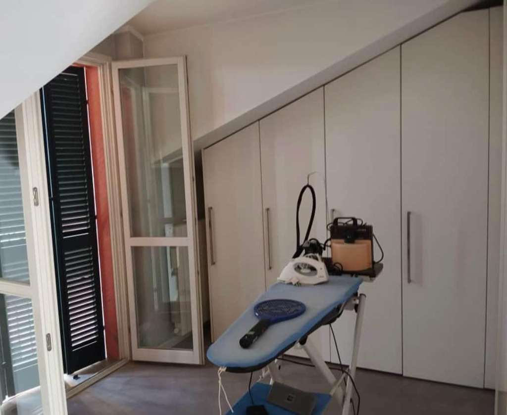 - Appartamento al secondo piano sottotetto, composto da ingresso, soggiorno, cucina con terrazzo e pozzo, due camere da letto, di cui una dotata di ripostiglio, entrambe con balconcino, bagno e locale lavanderia - Cantina al piano interrato - Autorimessa al piano interrato.