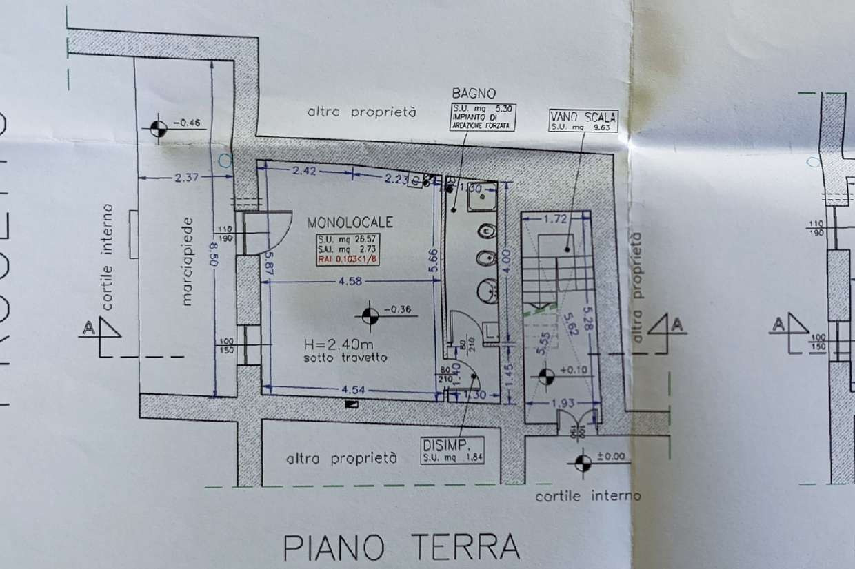 Abitazione al piano secondo di una piccola palazzina residenziale di tre piani fuori terra. L'appartamento è costituito da unico vano monolocale con angolo cottura, disimpegno e un bagno.Il vano è ripartito con un divisorio d'arredo.