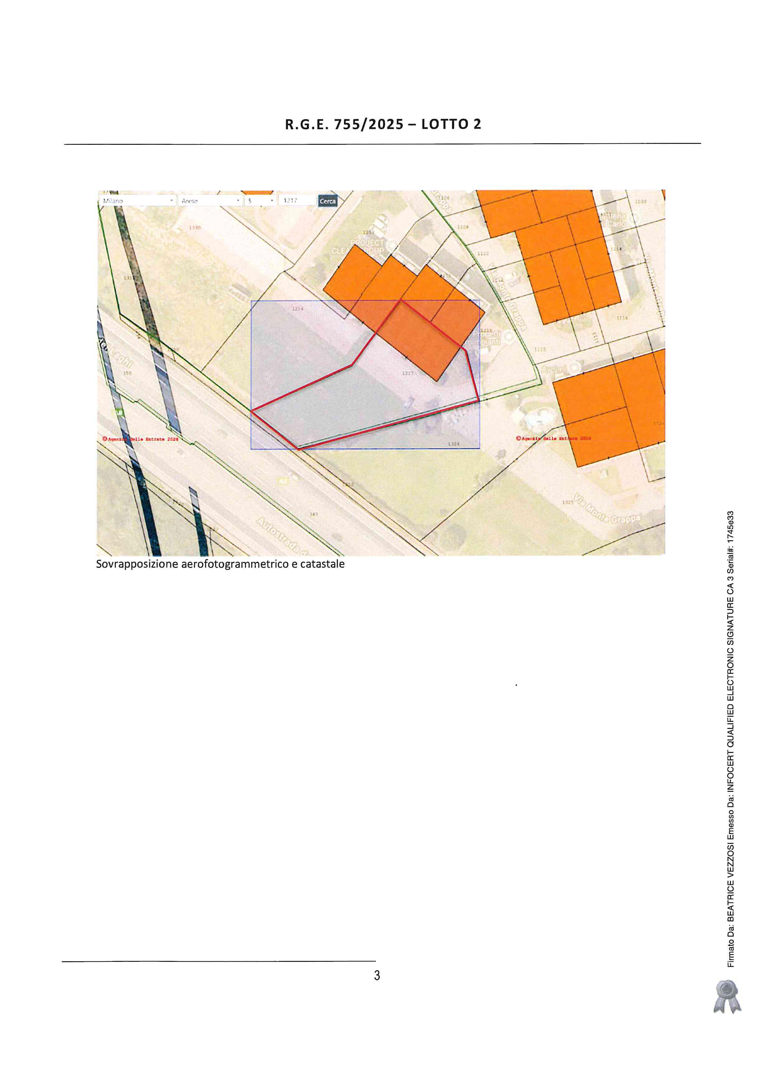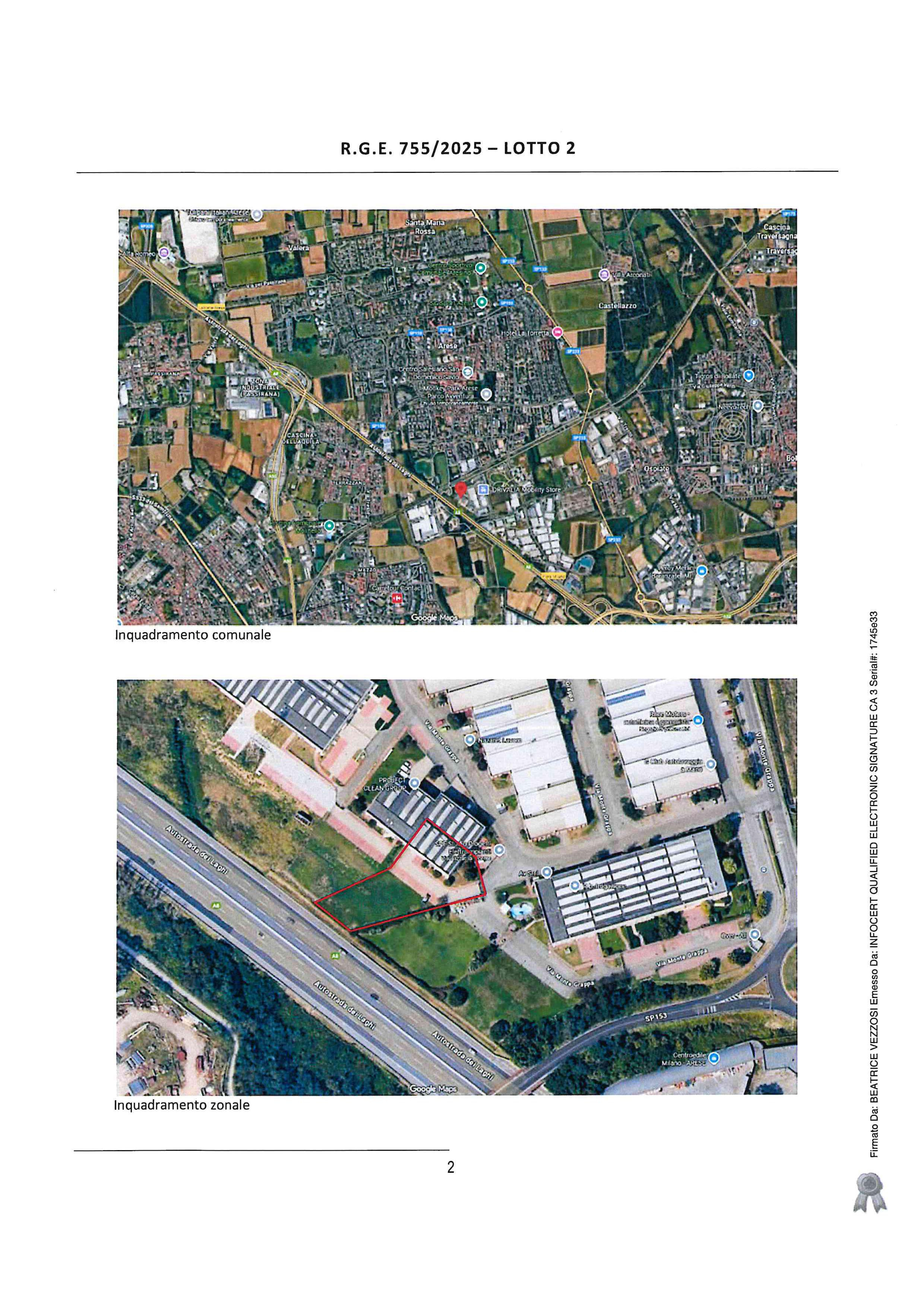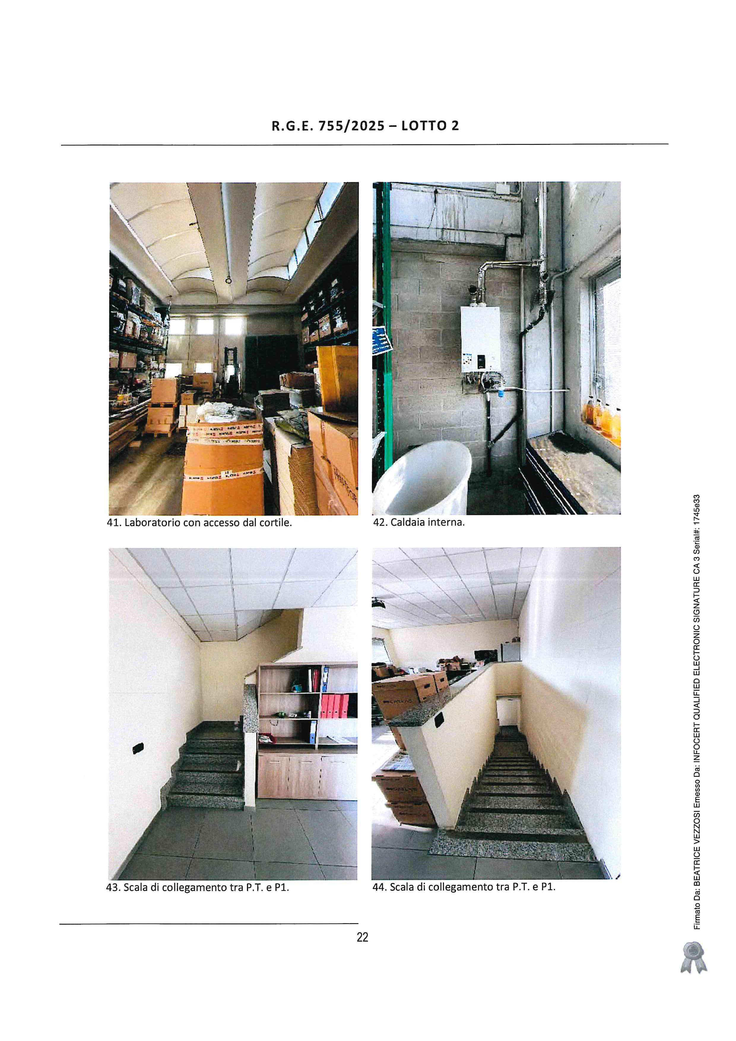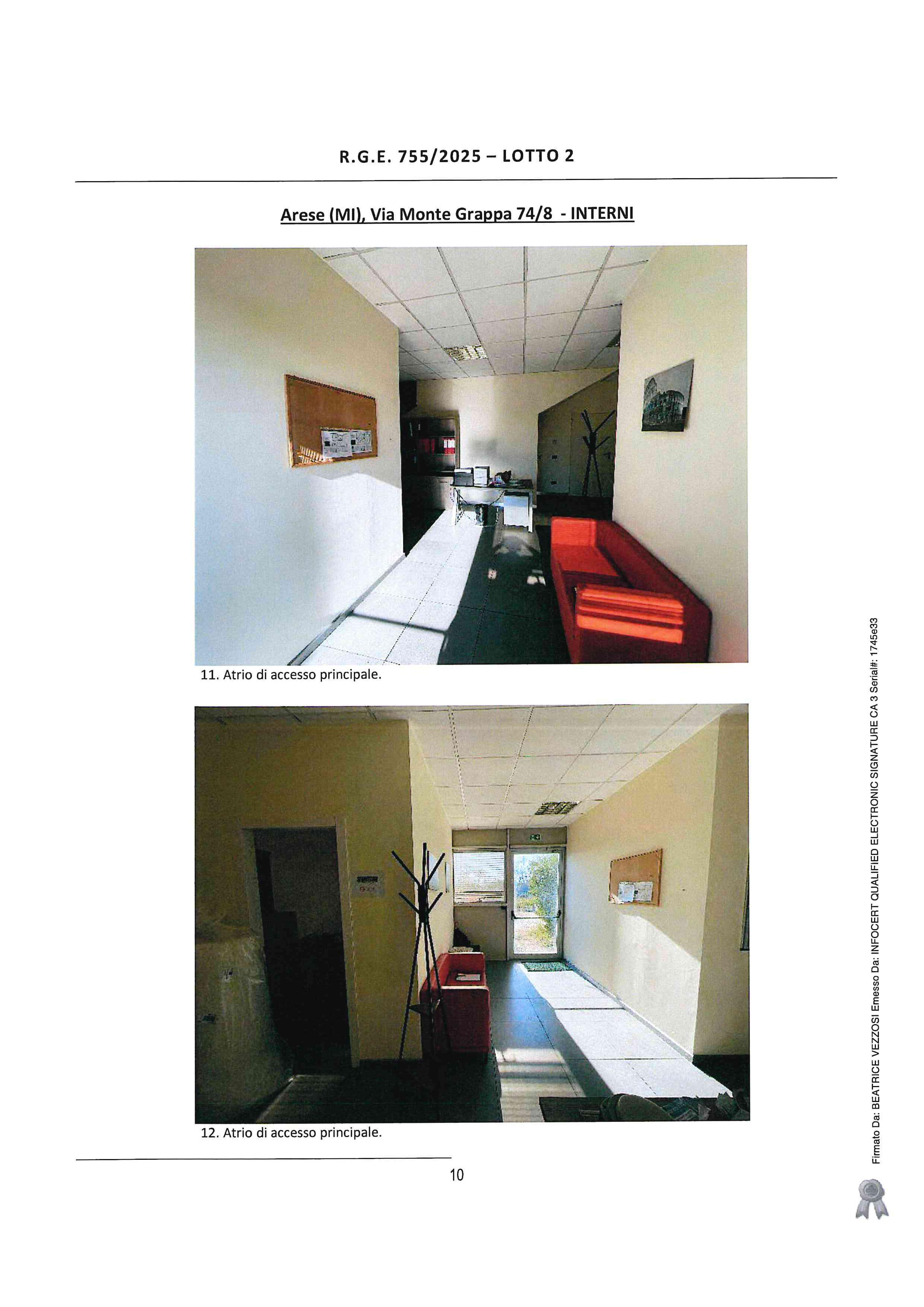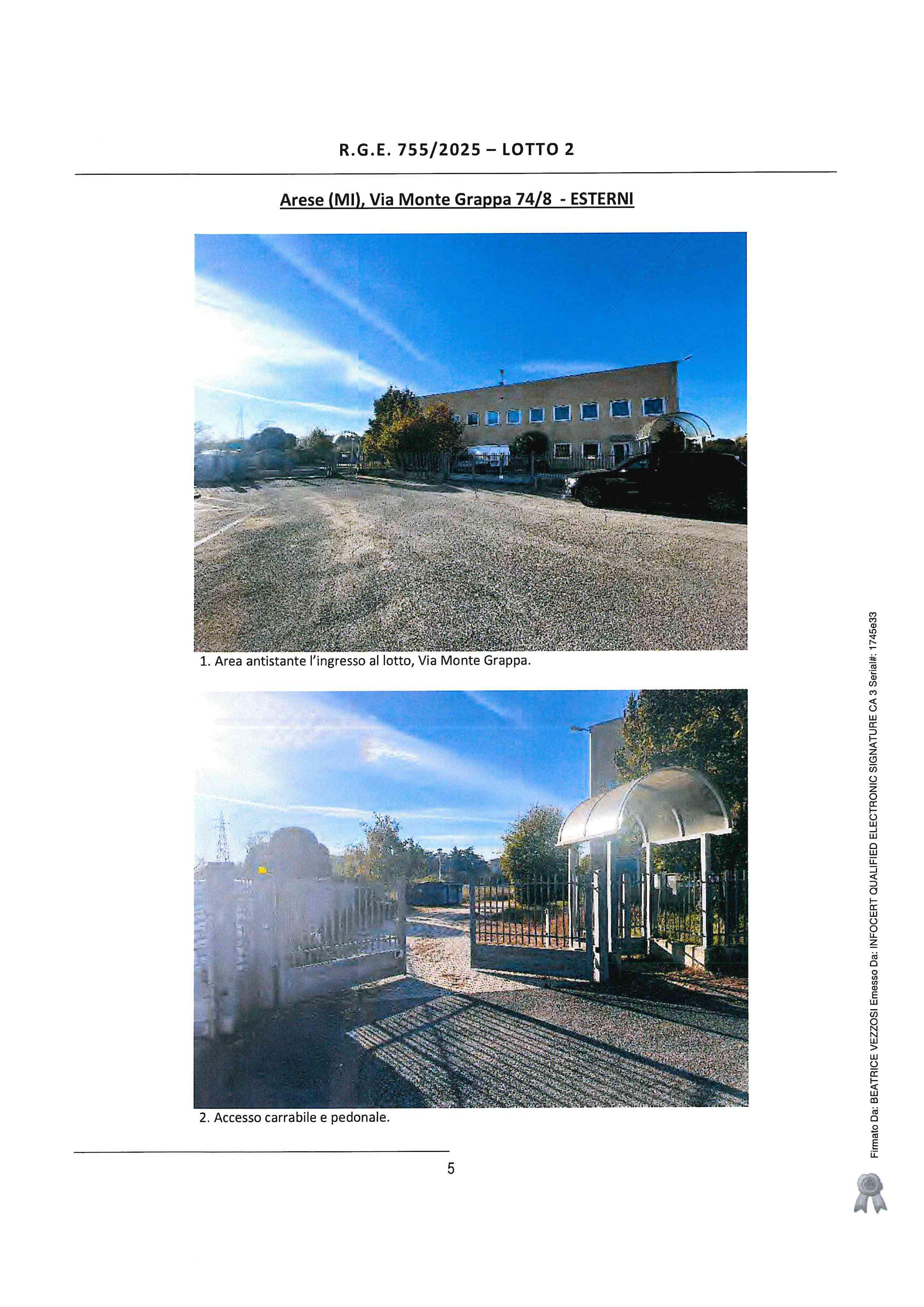 Arese (MI), via Monte Grappa n. 74/8, porzione di fabbricato a destinazione artigianale/industriale posto al piano terra e primo collegati da scala interna, composto al piano terra da laboratorio, ufficio e servizi ed al piano primo da ufficio e servizio, con annesso cortile pertinenziale.
