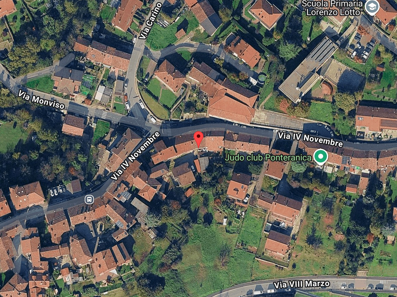 Nel Comune di Ponteranica (BG), Via IV Novembre nn. 37-39-41, piena ed esclusiva proprietà delle seguenti unità immobiliari (LOTTO 1): Corpo a) appartamento ad uso civile abitazione al piano primo, composto di cucina, soggiorno, bagno, disimpegno, due camere e due balconi.Corpo b) porzione di fabbricato con giardino, composta di cucina, due ripostigli e latrina esterna, al piano terra, e due camere al piano primo, alle quali si accede attraverso scala metallica esclusiva.
